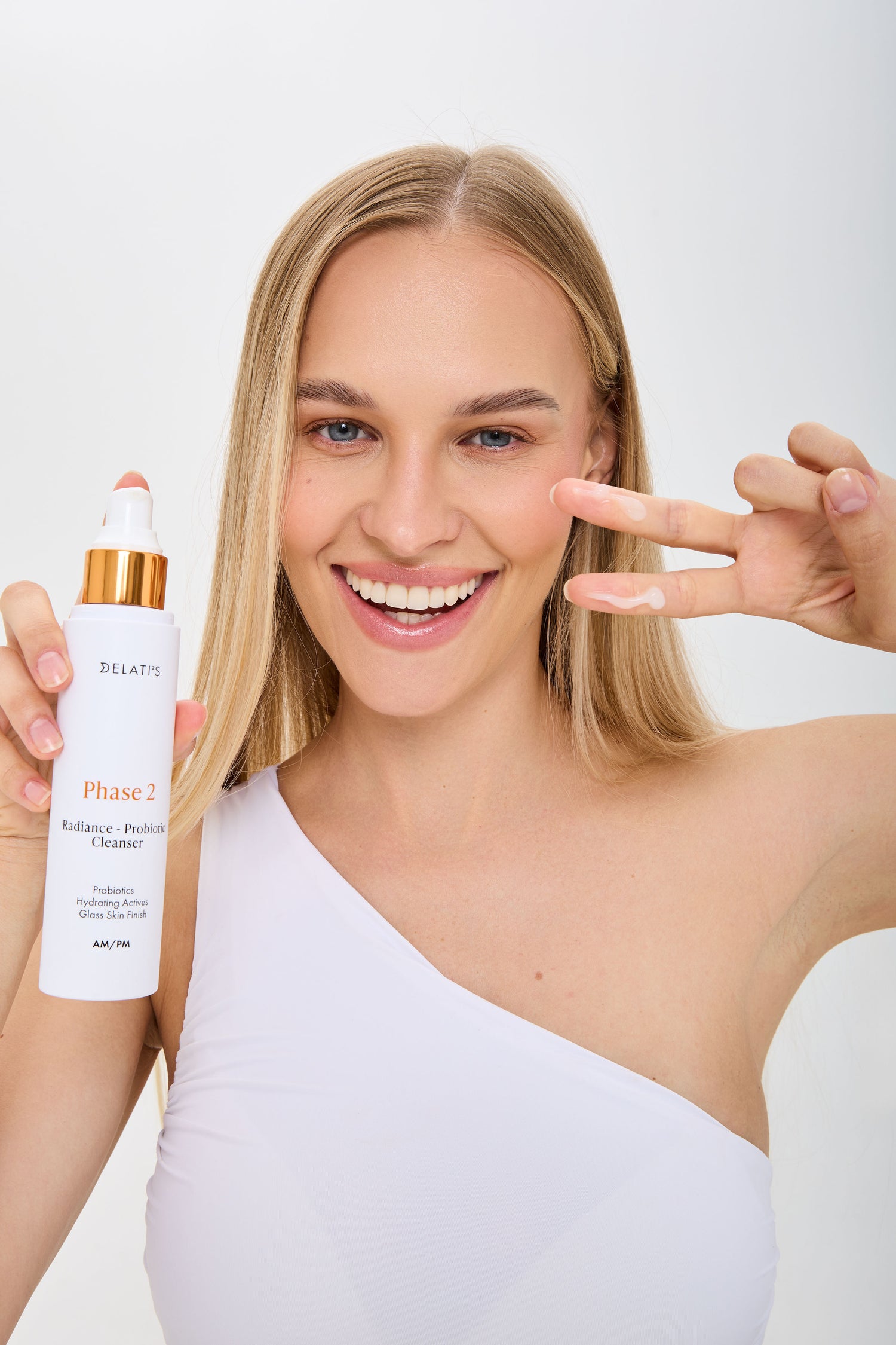 Večina čistil pobere “preveč” in kožo vrže iz balansa. PHASE 2 deluje obratno: nežni glukozidi očistijo, kompleks ceramidov (NP/AP/EOP) + holesterola + fitosfingozina pa dopolni kožne lipide, medtem ko glicerin, betain, laktati zadržijo vlago. Rezultat je čista, pomirjena in enakomerna polt z naravnim “glass-skin” finišem – brez zategovanja!