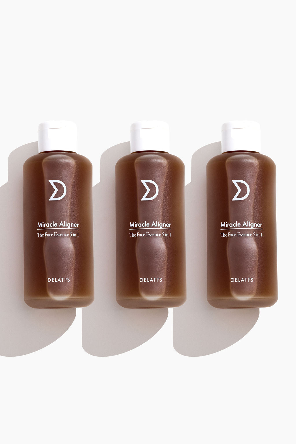 SET 3x Miracle Aligner Esenca za obraz 5v1 200 ml kožo globinsko vlaži, pomlajuje, pomirja in obnavlja, hkrati pa deluje protivnetno. Pomaga uravnavati proizvodnjo sebuma, zmanjšuje rdečico in nepravilnosti ter oža pore. Njena formula ščiti in obnavlja kožno bariero, pospešuje celjenje in preprečuje vnetja, vključno z aknami. Obogatena z močnimi antioksidanti, ščiti kolagen, spodbuja njegovo sintezo in deluje proti staranju kože, kar zagotavlja mladosten in svež videz.